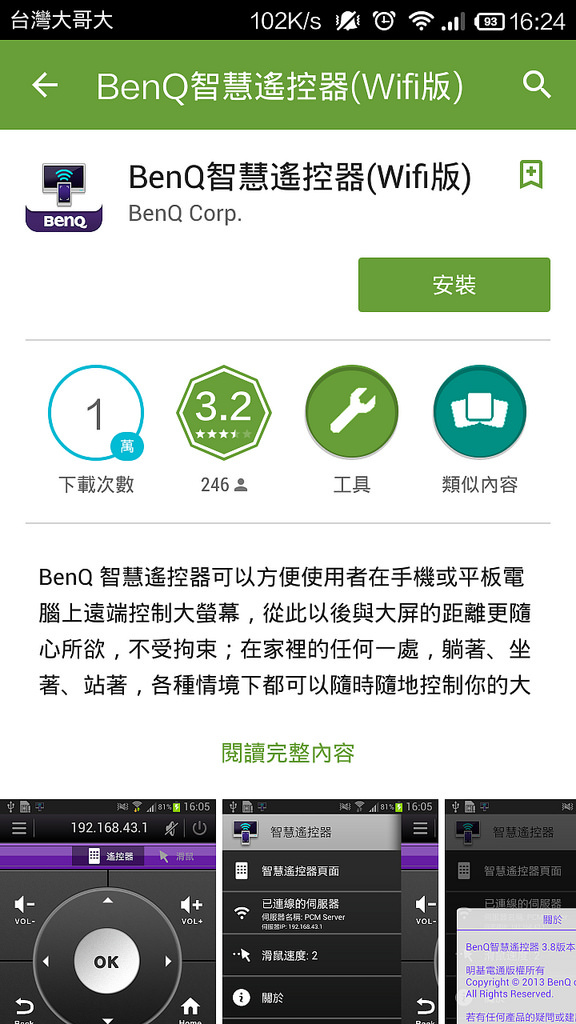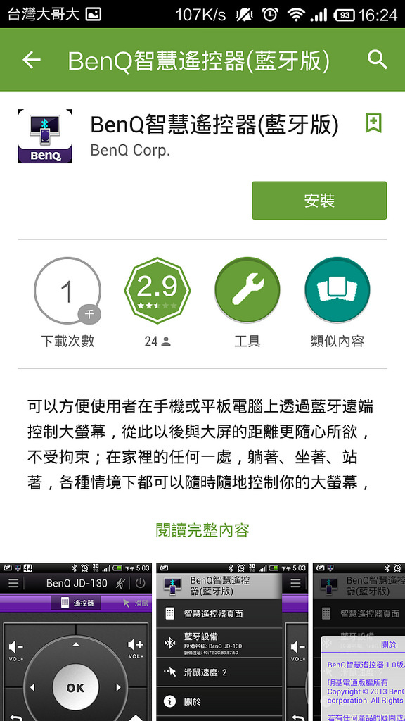 好在BenQ有提供wifi和藍芽的智慧的遙控器的app,裝在手機上,就可以滿足天冷手不用伸出棉背就能操作的需求了xd。