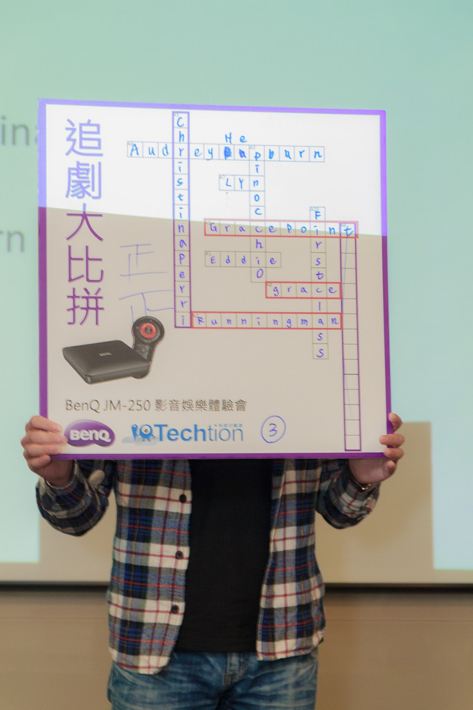 蜜柑的體驗心得以追劇為主,所以比賽的題目當然就是追劇大比拼,由蜜柑出十個問題,大家使用JM-250來尋找答案,並將答案寫在答案板上,時間限制5分鐘。